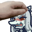 Animated sticker of Fang from Snoot Game/Goodbye Volcano High, as a gentle hand softly touches their face with a thumb.