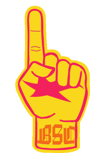 An animated yellow foam finger, featuring the BSC logo and a twinkling star, representing Barcelona Sporting Club.