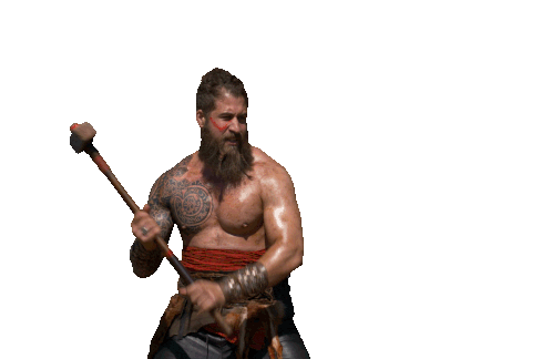 A muscular man with a beard and tattoos powerfully swings a sledgehammer, embodying the spirit of Fanta Battle Of Flavors.
