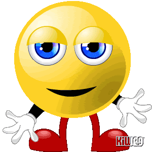A yellow emoji character with blue eyes and red shoes farts humorously, then turns around to reveal a big, happy smile.