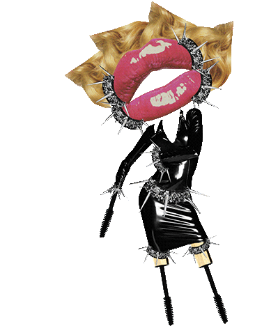 Animated sticker featuring a stylish cartoon woman with spikes and mascara, embodying a fashion diva vibe, inspired by Versace.