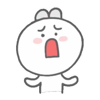 A cute white cartoon rabbit character expresses surprise and dismay with wide eyes and an open mouth, shrugging its arms.