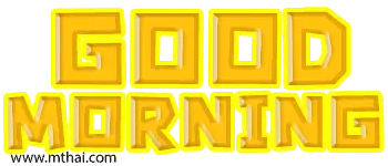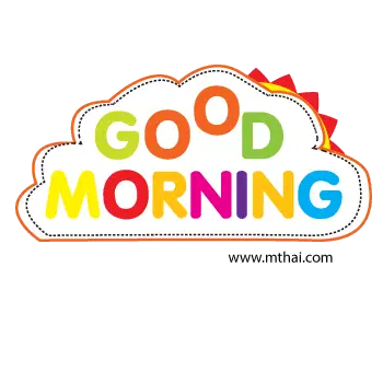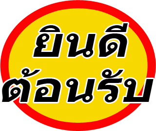 A bright yellow circle with a red border displays the Thai words for 'Welcome', appearing and disappearing.