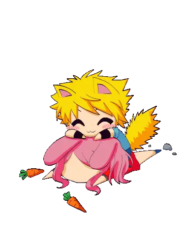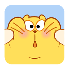 A chubby yellow cartoon cat with wide eyes and blush marks has its squishy cheeks pinched, showing a cute and surprised expression.
