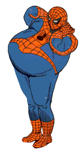 Animated sticker of a comically overweight Spiderman in his classic suit, jiggling slightly.