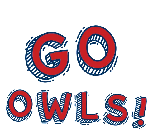 Animated FAU Florida Atlantic University owl mascot winks with a star, showcasing school spirit.