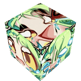 Fauna Ceres, a green-haired anime character, appears distressed on a rotating pixelated cube sticker.