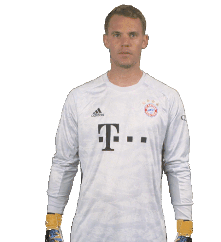 Manuel Neuer, the FC Bayern goalkeeper, stands ready in his white jersey and gloves.