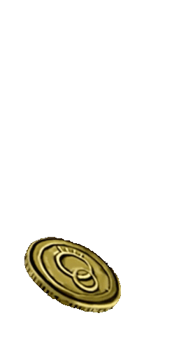 A golden coin from Fear And Hunger spins and lands on its tails side, featuring a stylized face.