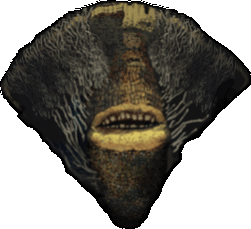 An animated sticker featuring the grotesque God of the Depths from the game Fear & Hunger, with its wide, toothy mouth.