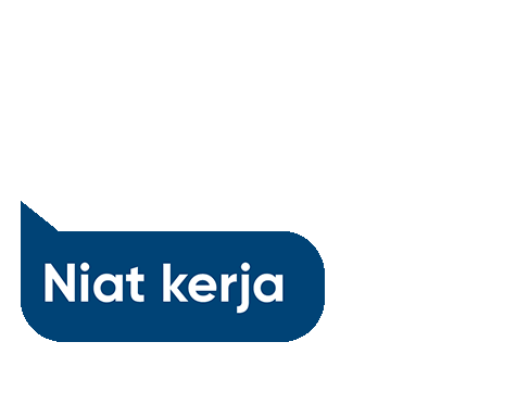 Blue speech bubble with 'Niat kerja' (Intention to work) text, expressing a fed-up or frustrated work reaction.