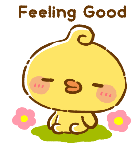 Piyomaru, the cute chick character, sits happily on the grass, feeling good with flowers blooming around.