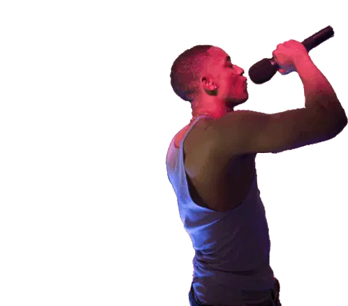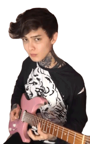 Tim Henson, the guitarist, passionately playing a vibrant pink electric guitar and vibing with the music.