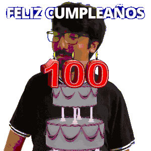 a man blowing out candles on a cake that says 100 on it