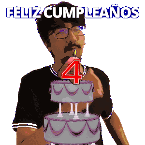 a man is blowing out a candle on a birthday cake with the number 4 on it