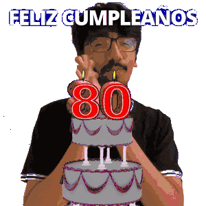 a man blowing out candles on a birthday cake that says feliz cumpleanos