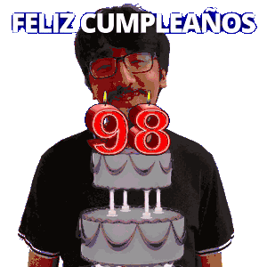 a man blowing out candles on a cake with the number 98 on top