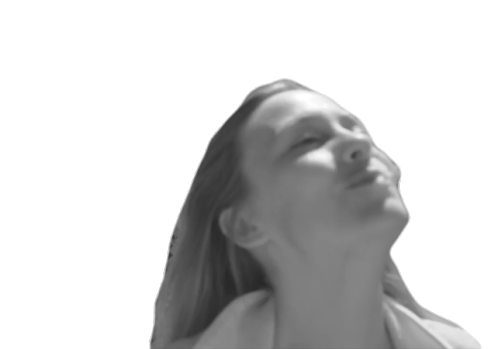 Rigoberta Bandini looking up, relaxed and happy, with her hair flowing in this black and white animated sticker.