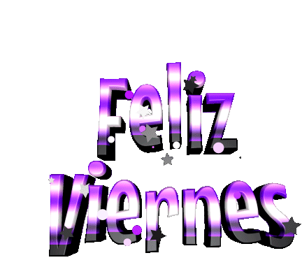 A sparkling purple and black 3D text animation wishing a 'Happy Friday' in Spanish, perfect for celebrating the end of the week.