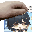 Female Rover from Wuthering Waves looks up curiously at a donut being held above her head.