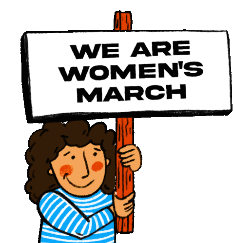 An animated sticker showcasing diverse women holding a 'WE ARE WOMEN'S MARCH' sign, celebrating feminism, inclusion, and empowerment.