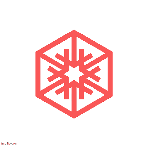 a red hexagon with arrows pointing to a star in the middle