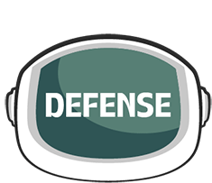 An animated helmet-like screen displaying the word "DEFENSE" and a shouting face, ideal for basketball-themed messages.