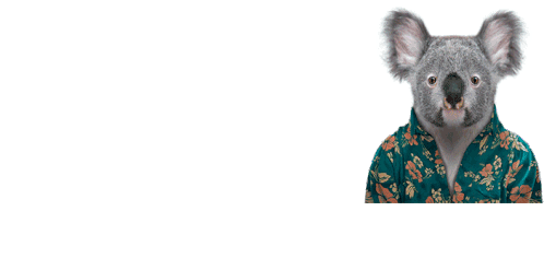 A colorful sticker featuring the word "Fıçı" with a koala wearing a floral shirt as part of the text.