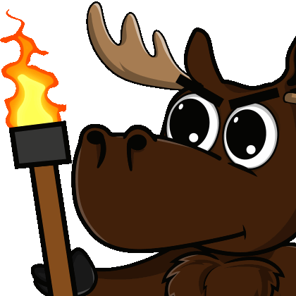 An angry cartoon moose, possibly from Moxie Meadows or DoYouMoose, fiercely holding a flaming torch, ready to fight or protest.
