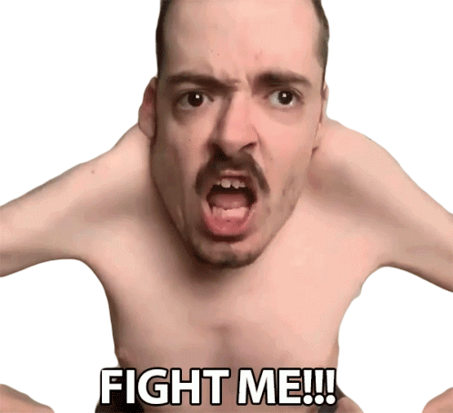 Ricky Berwick, a shirtless man with a beard, intensely screams 'Fight Me!!!' in this cocky and angry sticker.