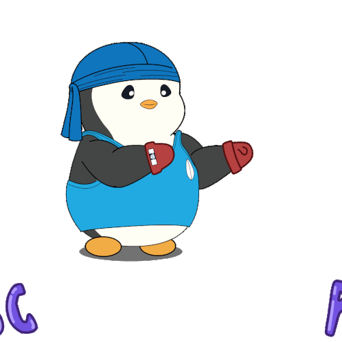 An animated penguin character named Scrappy, wearing a blue headband and boxing gloves, practices fighting moves.