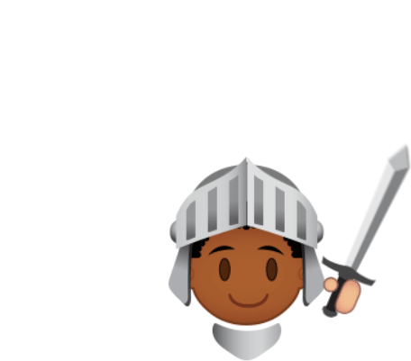 An emoji sticker of a knight with a sword, associated with Kaye and Rhianna Dorris from The Kid Who Would Be King.