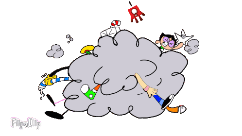 Natalie Kenig's Poofy Town characters engage in a chaotic cartoon fight, a dynamic and energetic brawl.