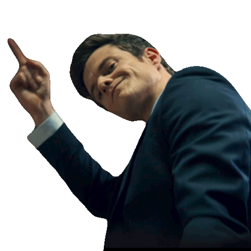 Nathan Caine from Novocaine winks and makes a finger gun gesture, pointing directly at the viewer.