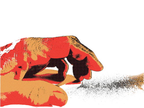 An artistic animation of a hand tapping fingers, creating a cloud of dust, perfect for expressing boredom or waiting.
