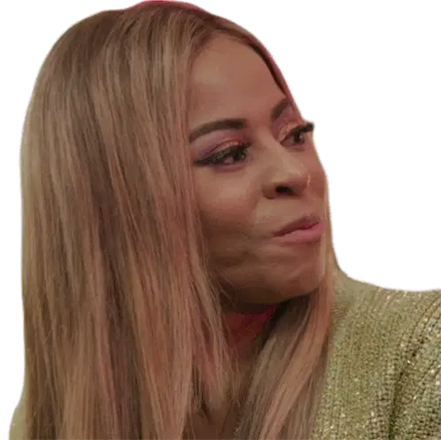 Candiace Dillard Bassett from Real Housewives of Potomac crosses her fingers, expressing hope or good luck.