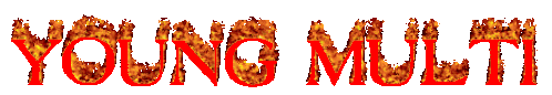 Animated sticker featuring the name 'Young Multi' dynamically rendered in vibrant, flickering red and orange flames.