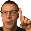 Fishingwithporter, a man with glasses, points his finger upwards in this animated sticker.