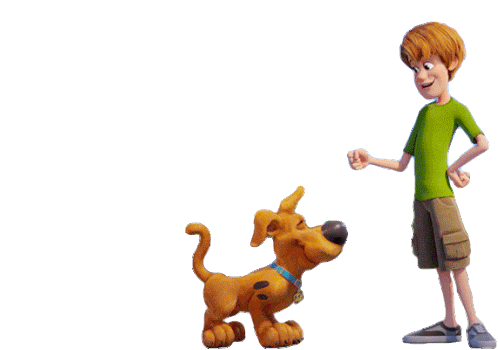 Scooby Doo and Shaggy, the iconic bros, share a playful moment in this animated sticker. Shaggy makes a fist gesture while Scooby looks up.