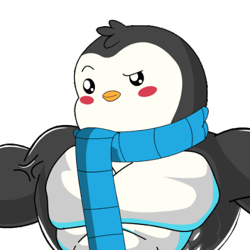 a cartoon penguin wearing a blue scarf around its neck
