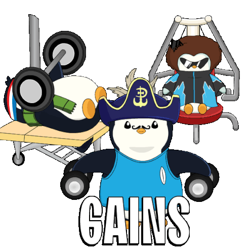 Cute penguins lifting weights and exercising, showcasing their dedication to fitness and making gains.