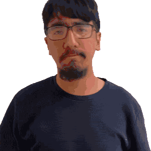 a man with glasses and a beard wearing a black shirt
