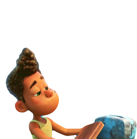 Alberto Scorfano from Disney Pixar's Luca, focused on fixing something with a hammer, showing his resourceful spirit.