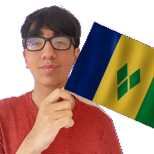 a man wearing glasses is holding a flag in his hand