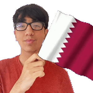a man wearing glasses and a red shirt holds a red and white flag