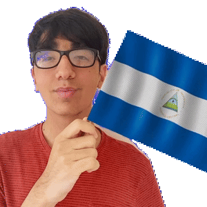a man wearing glasses holds a nicaragua flag