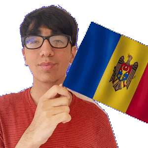 a man wearing glasses is holding a small flag with a eagle on it