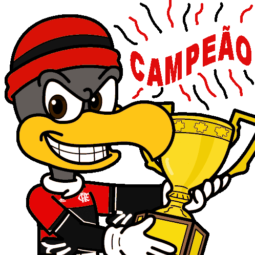 a cartoon of a bird holding a trophy with the word campeao behind him