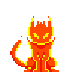 A vibrant pixel art sticker of a flaming, demon-like cat with horns and a long tail, glowing with intense heat.