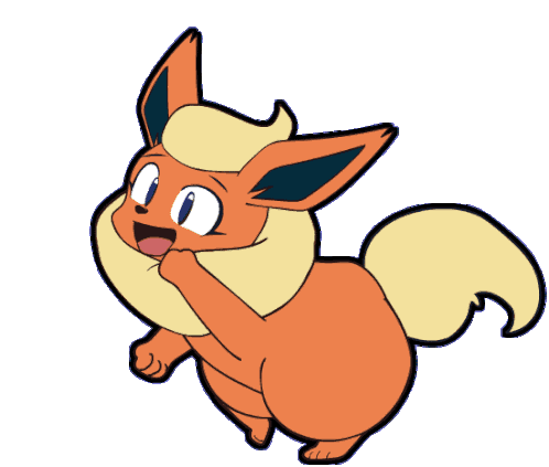 Animated sticker of Flareon, an Eeveelution, happily dancing with a cheerful expression.